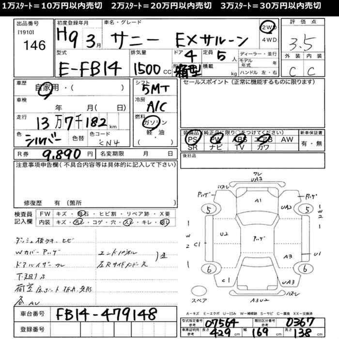 NISSAN SUNNY 1997 г., лот № 146