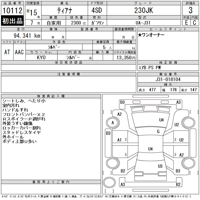 NISSAN TEANA 2003 г., лот № 10112