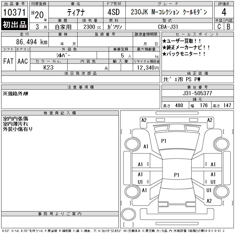Стартовая цена авто на аукционе 0 ¥