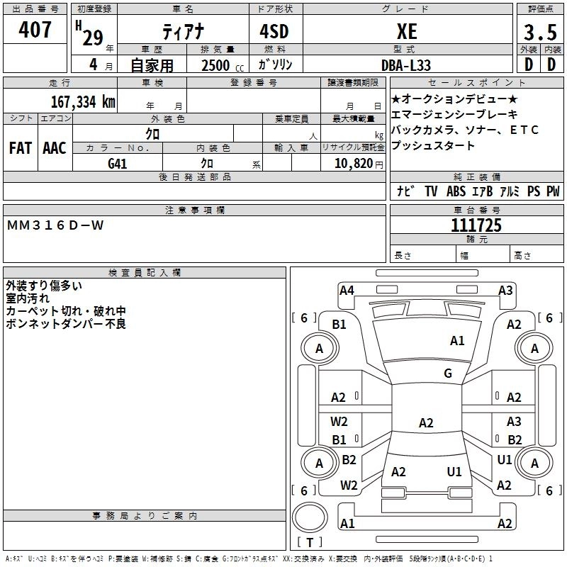 NISSAN TEANA 2017 г., лот № 407