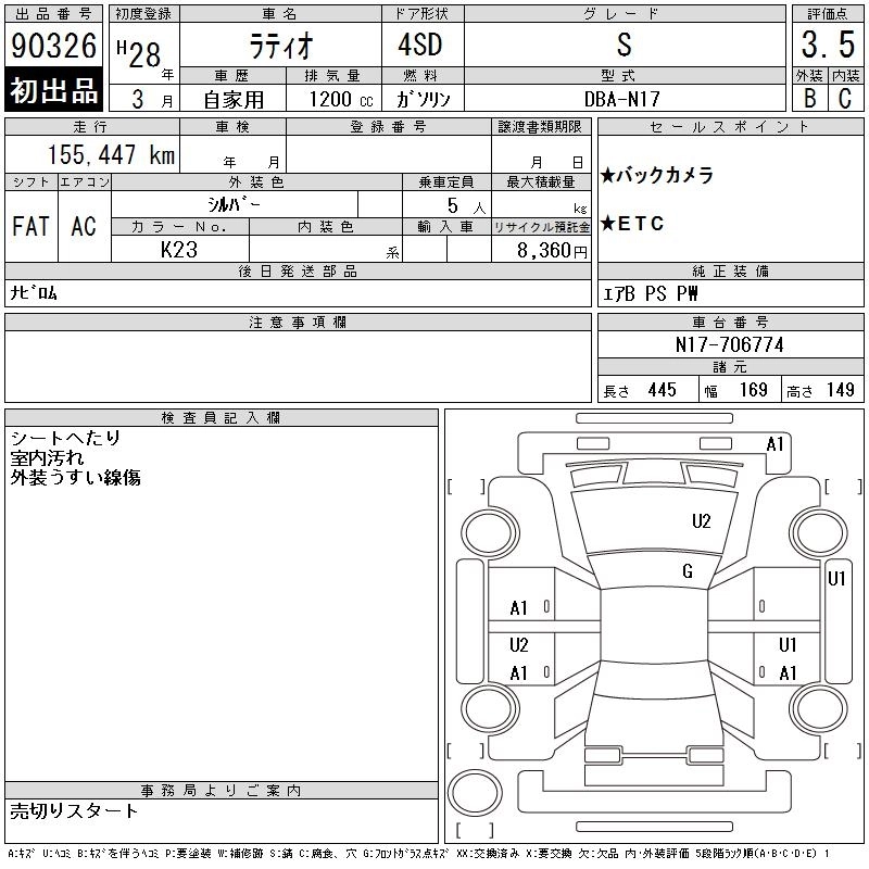 NISSAN TIIDA LATIO 2016 г., лот № 90326