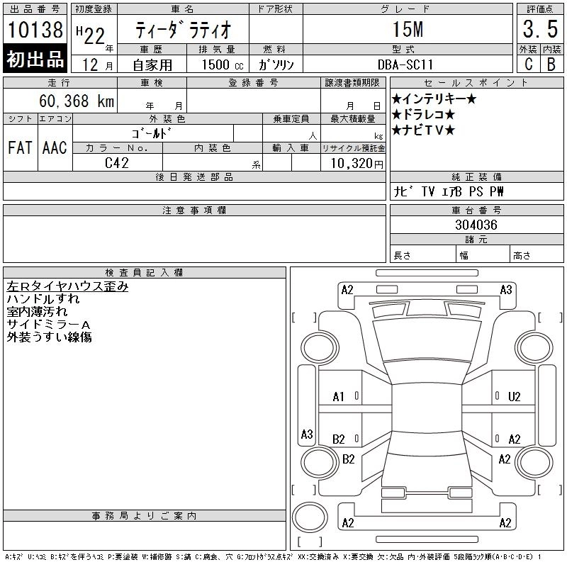 NISSAN TIIDA LATIO 2010 г., лот № 10138