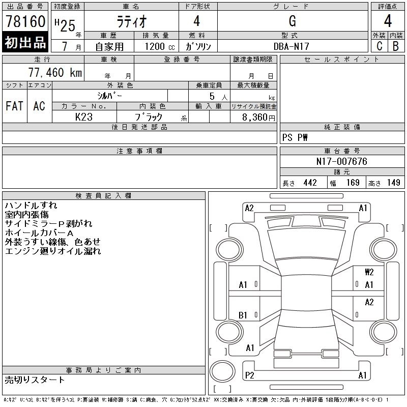NISSAN TIIDA LATIO 2013 г., лот № 78160