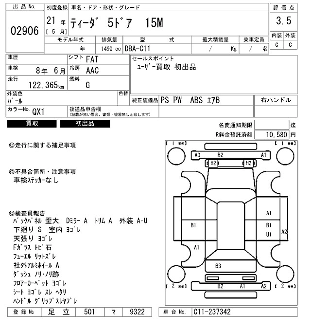 NISSAN TIIDA 2009 г., лот № 2906