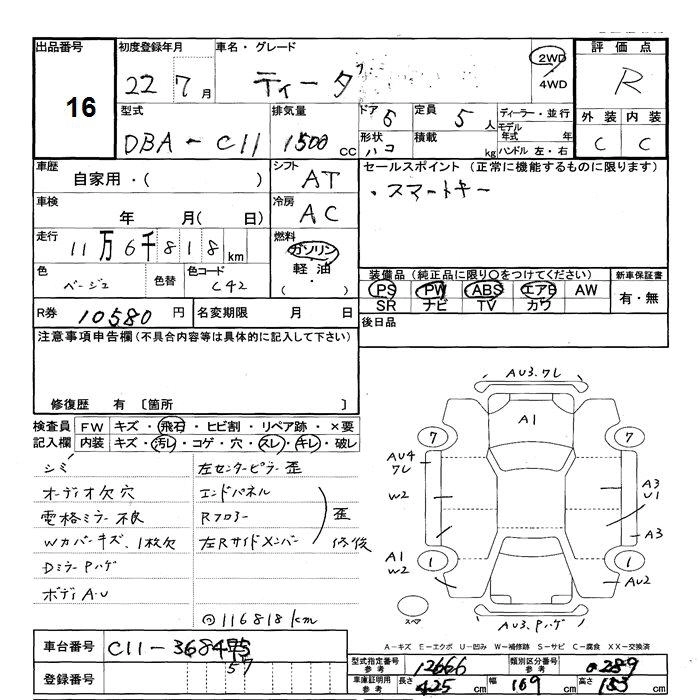 NISSAN TIIDA 2010 г., лот № 16