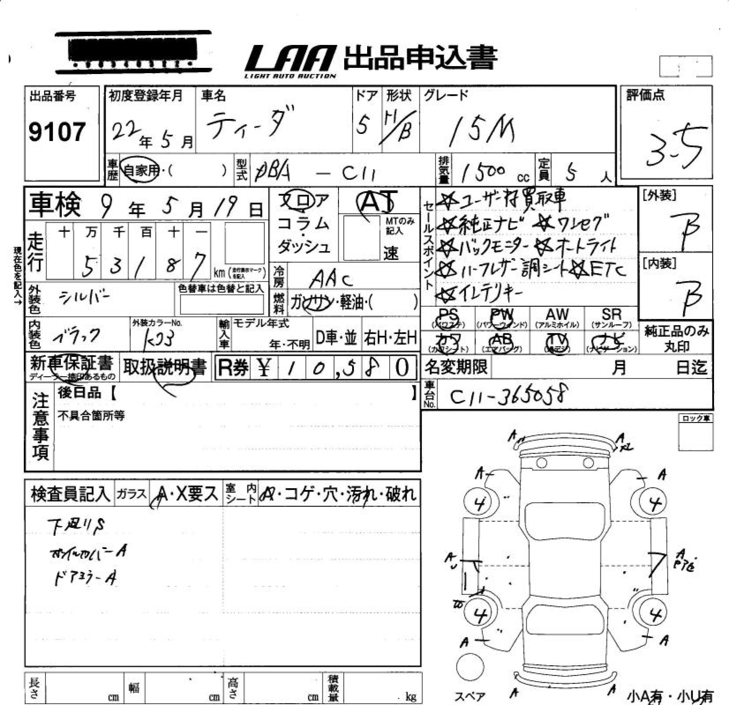 NISSAN TIIDA 2010 г., лот № 9107