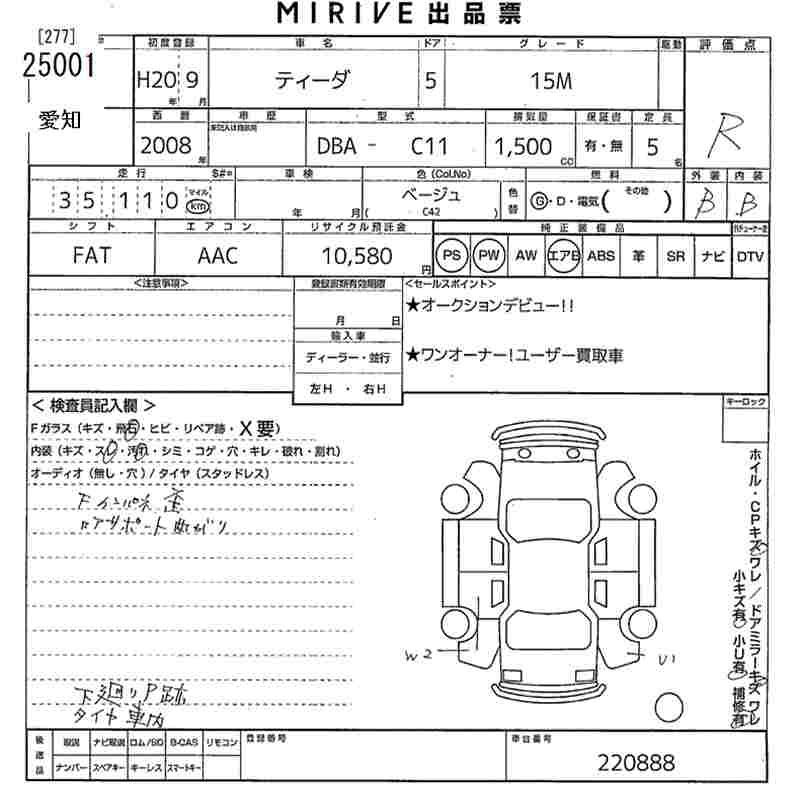 NISSAN TIIDA 2008 г., лот № 25001