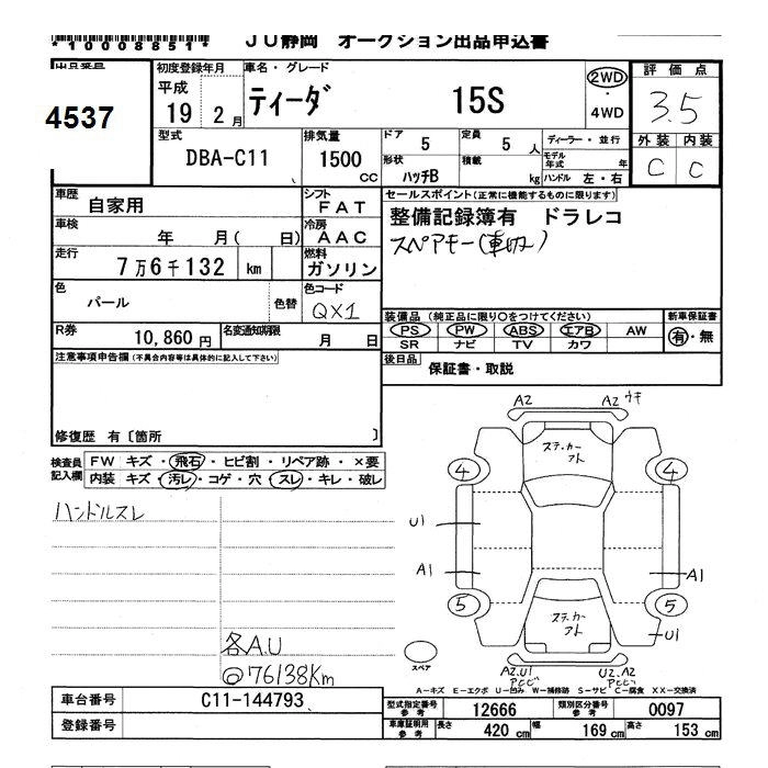 Статус продан Лот 4537 Аукцион JU Shizuoka Дата аукциона 10.03.2026