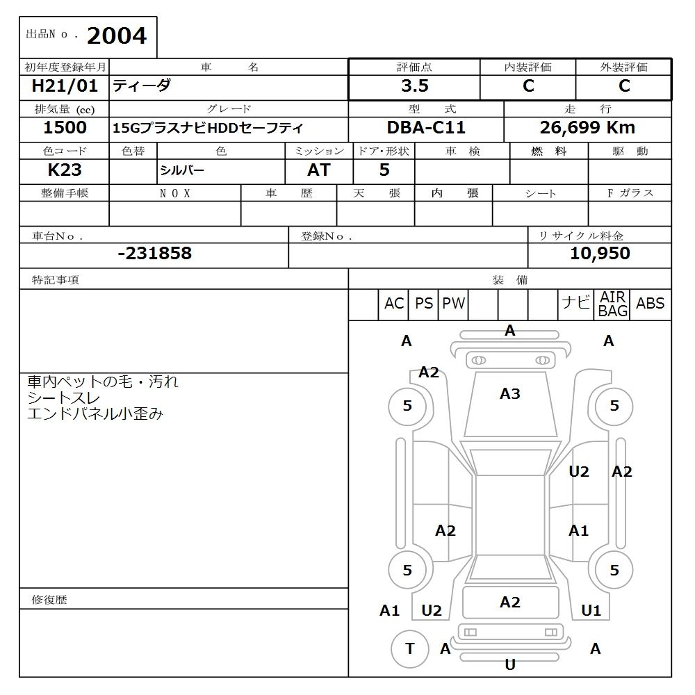 Статус продан Лот 2004 Аукцион Nissan Osaka Дата аукциона 09.03.2026