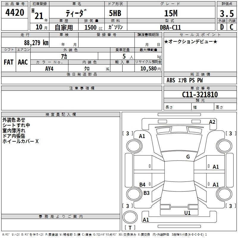 NISSAN TIIDA 2009 г., лот № 4420