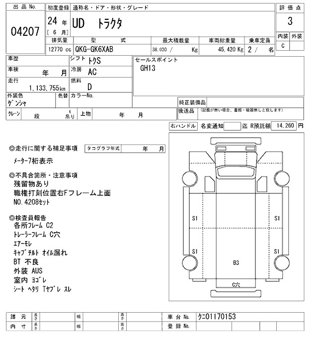 Статус выставлен на аукцион Лот 4207 Аукцион ARAI Oyama VT Дата аукциона 24.01.2026