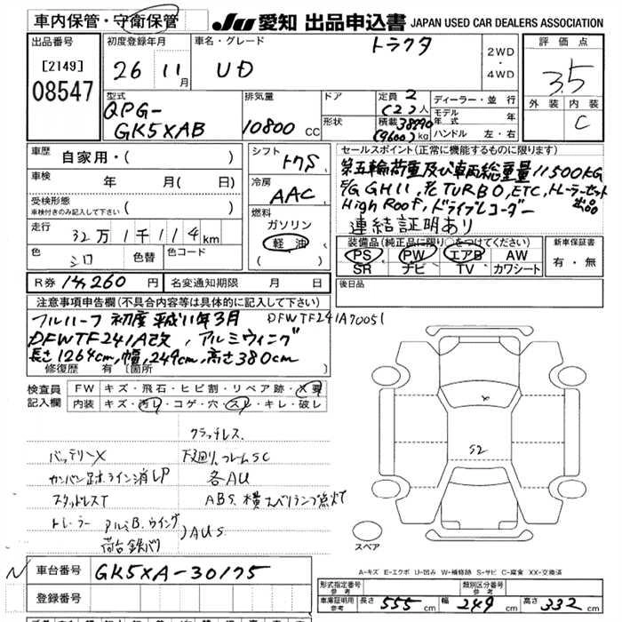 Статус выставлен на аукцион Лот 8547 Аукцион JU Aichi Дата аукциона 12.03.2026