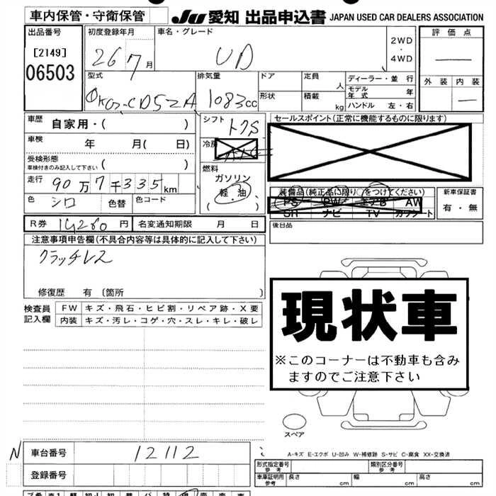 Статус выставлен на аукцион Лот 6503 Аукцион JU Aichi Дата аукциона 12.03.2026