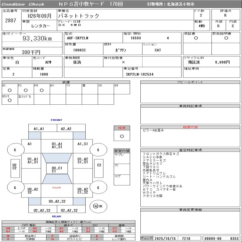 Статус выставлен на аукцион Лот 2807 Аукцион NPS Tomakomai Дата аукциона 28.10.2025