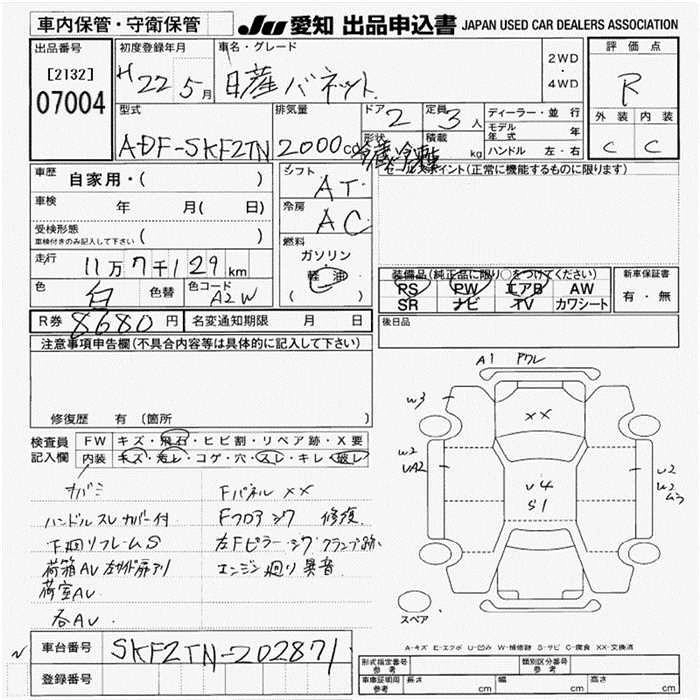 Статус выставлен на аукцион Лот 7004 Аукцион JU Aichi Дата аукциона 30.10.2025