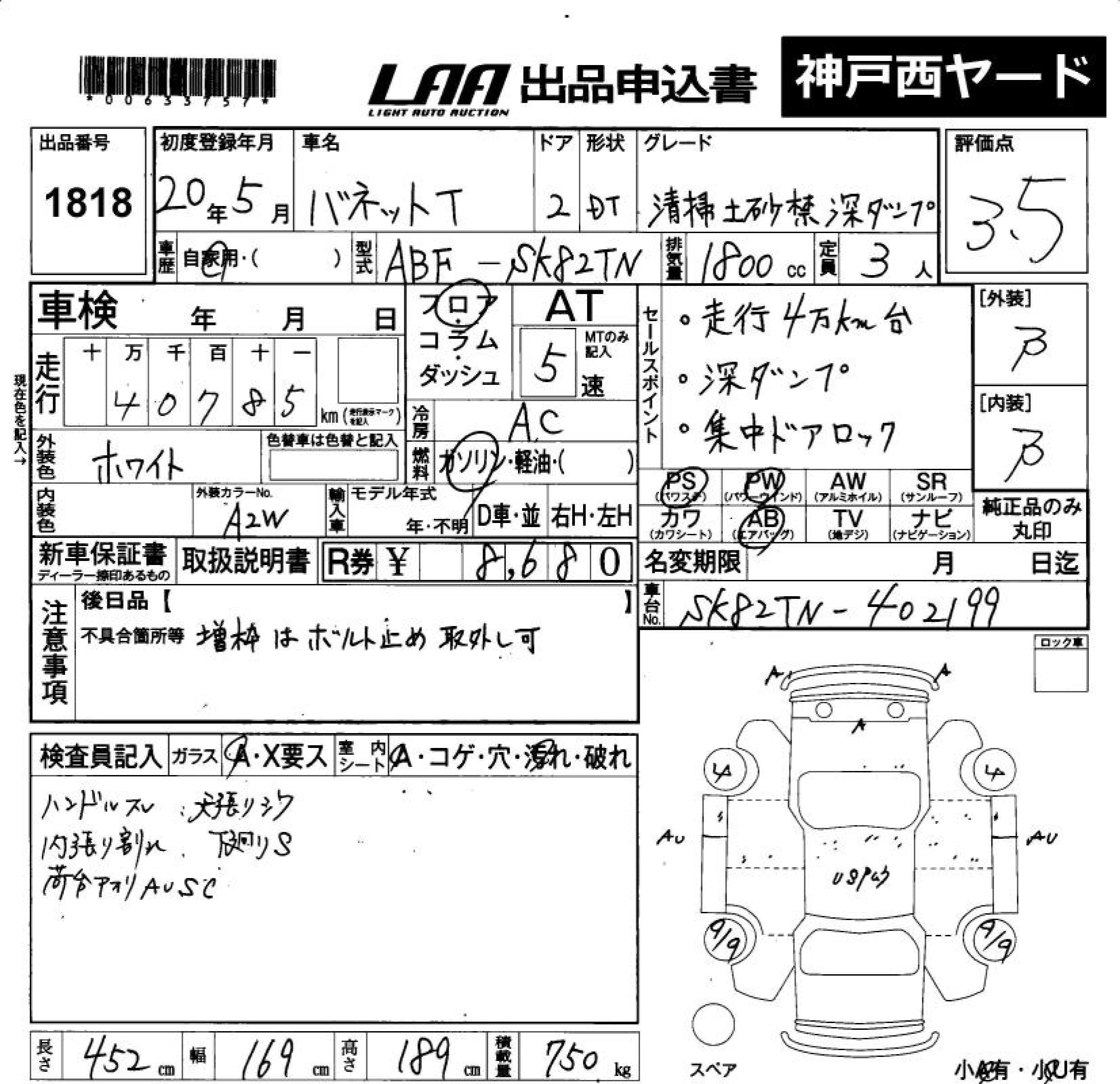 Статус не продан Лот 1818 Аукцион LAA Okayama Дата аукциона 23.01.2026
