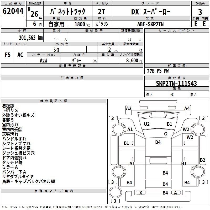 NISSAN VANETTE TRUCK 2014 г., лот № 62044