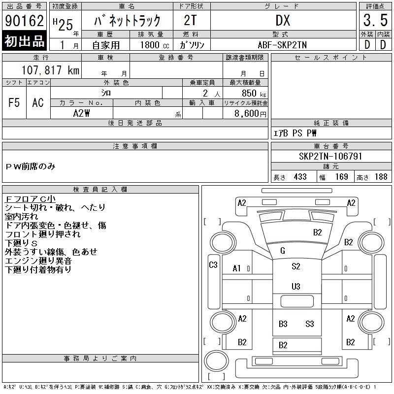 NISSAN VANETTE TRUCK 2013 г., лот № 90162