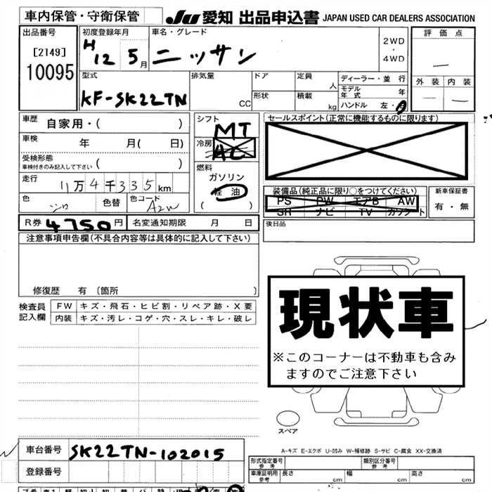 Статус выставлен на аукцион Лот 10095 Аукцион JU Aichi Дата аукциона 12.03.2026