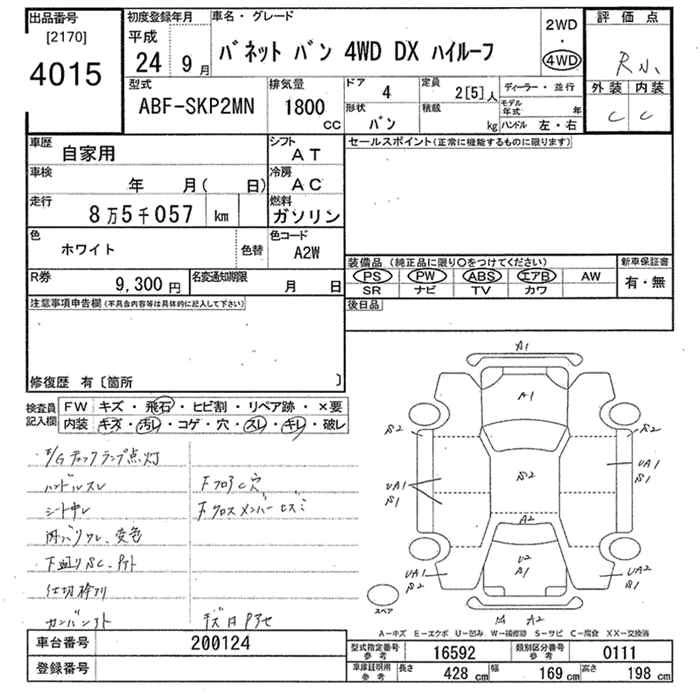 NISSAN VANETTE VAN 2012 г., лот № 4015