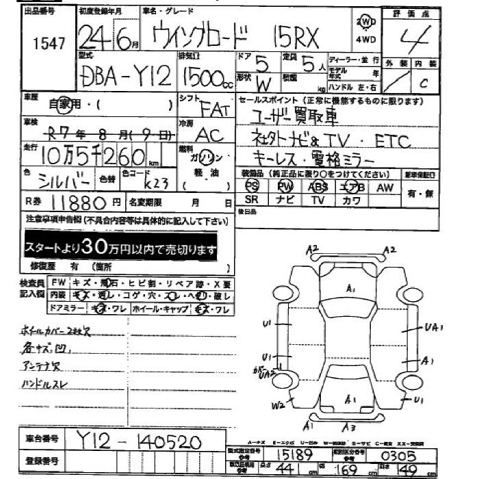 NISSAN WINGROAD 2012 г., лот № 1547