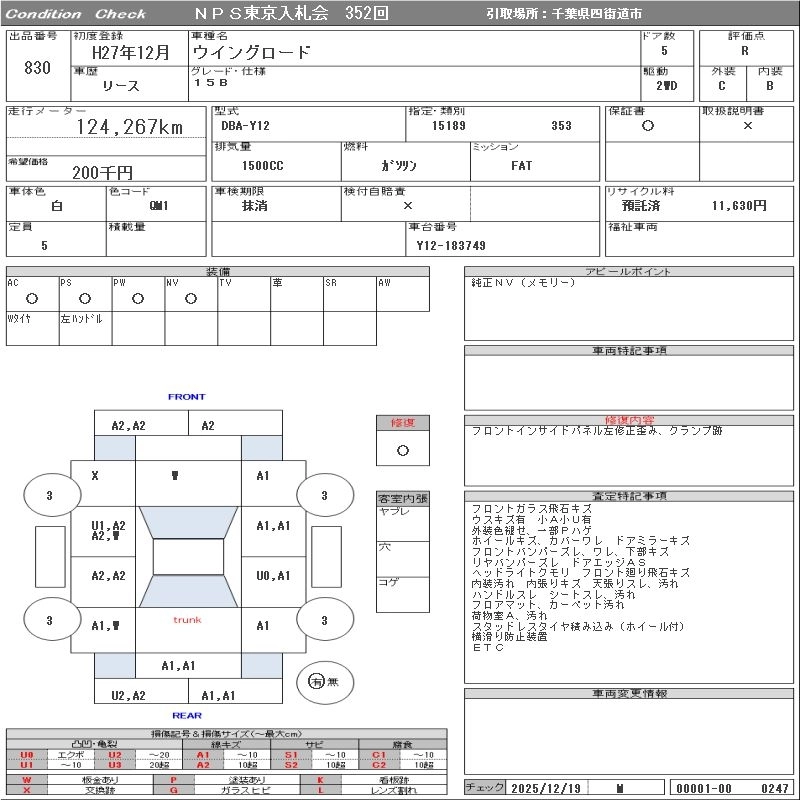 NISSAN WINGROAD 2015 г., лот № 830