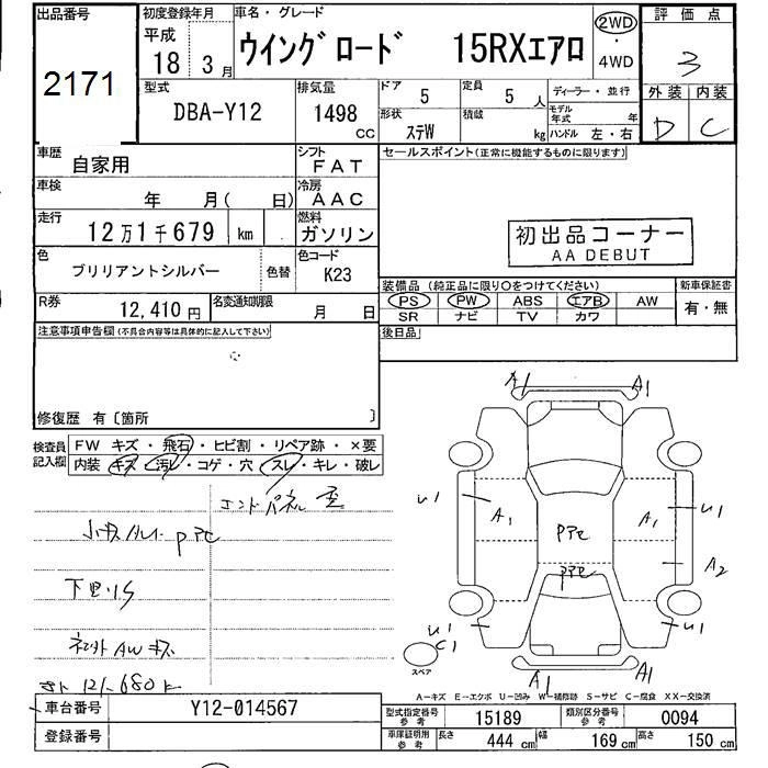 NISSAN WINGROAD 2006 г., лот № 2171