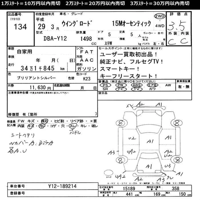 NISSAN WINGROAD 2017 г., лот № 134
