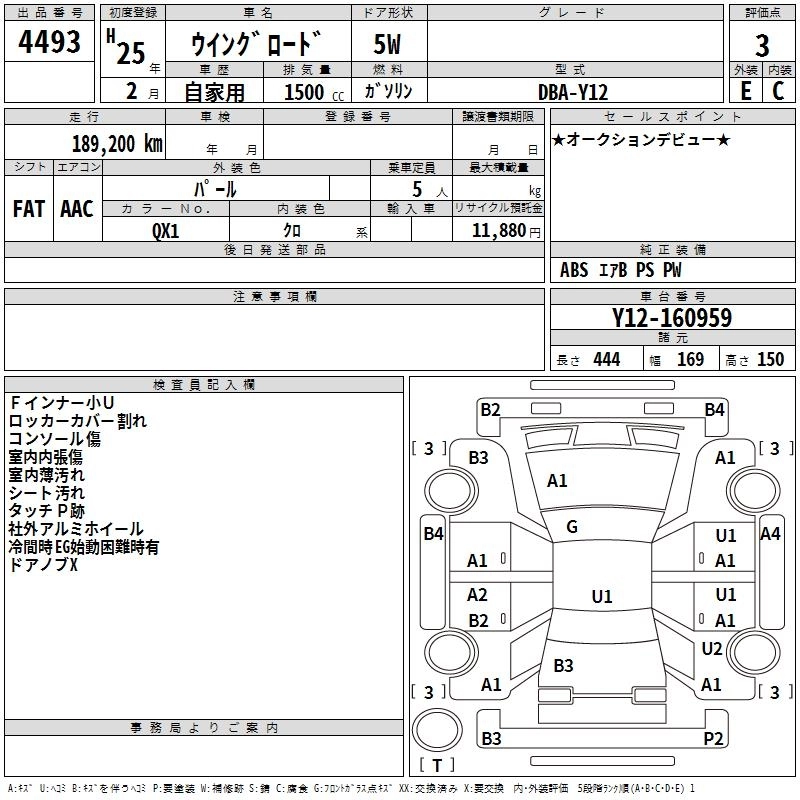 NISSAN WINGROAD 2013 г., лот № 4493