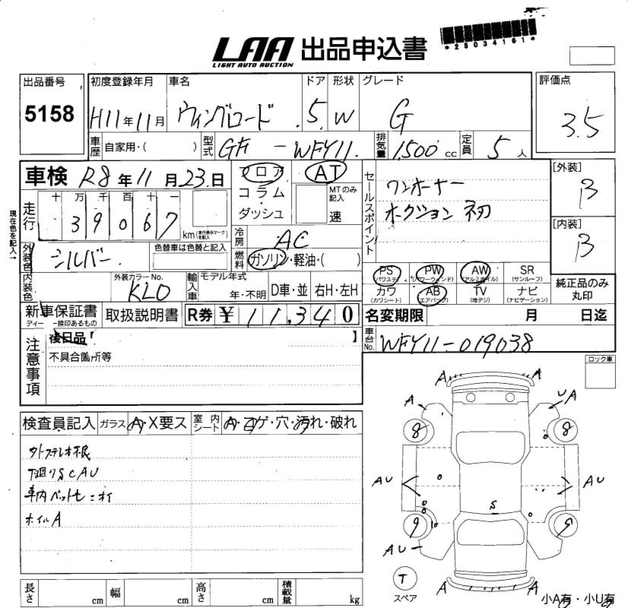 NISSAN WINGROAD 1999 г., лот № 5158