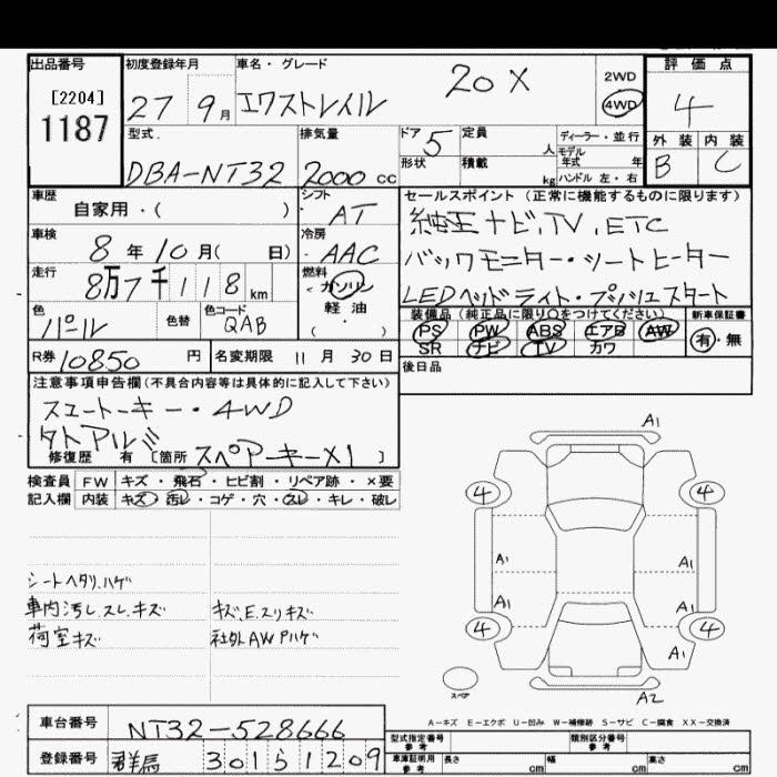 Год выпуска2015 Пробег 87 000 км КузовNT32 Комплектация4WD 20X