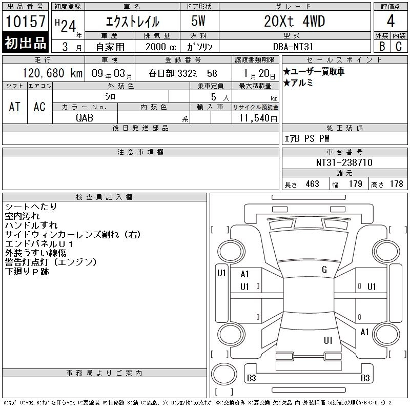 Год выпуска2012 Пробег 121 000 км КузовNT31 Комплектация20Xt 4WD