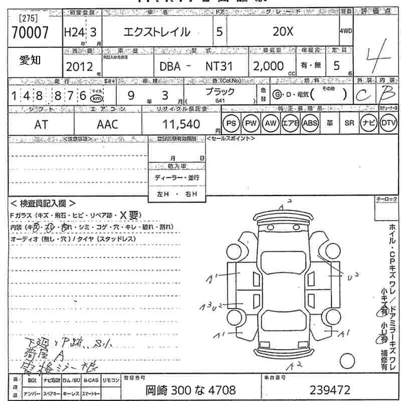 NISSAN X-TRAIL 2012 г., лот № 70007