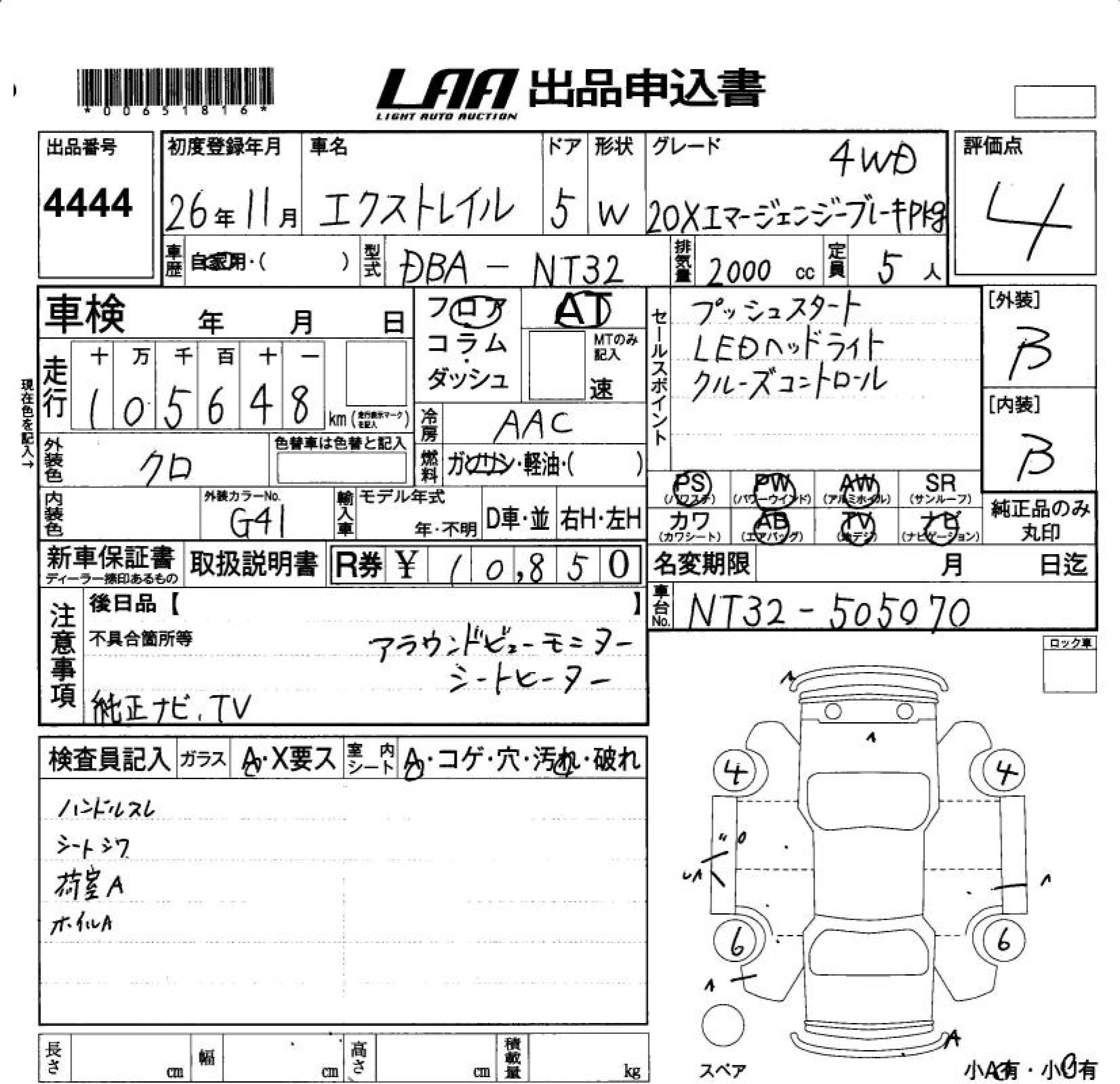 NISSAN X-TRAIL 2014 г., лот № 4444