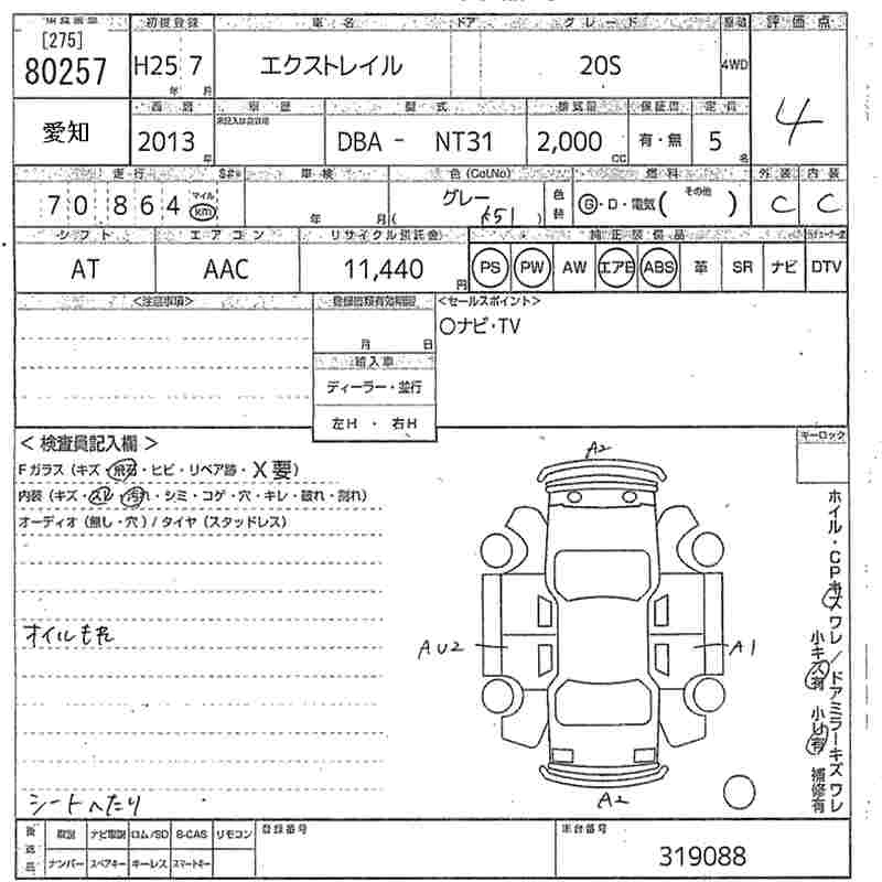 NISSAN X-TRAIL 2013 г., лот № 80257