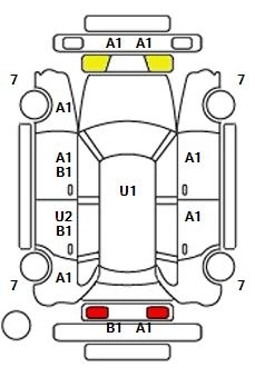 B1Маленькая вмятина с царапиной (размером с большой палец)
