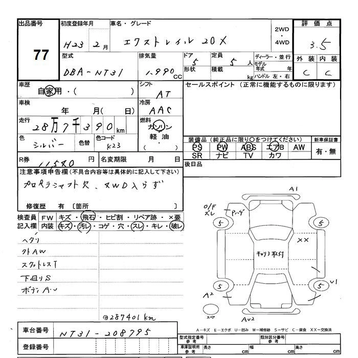 Год выпуска2011 Пробег 287 000 км КузовNT31 Комплектация20X