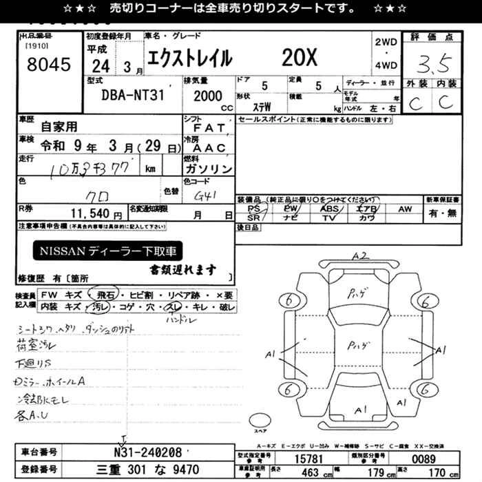 Год выпуска2012 Пробег 103 000 км КузовNT31 Комплектация20X
