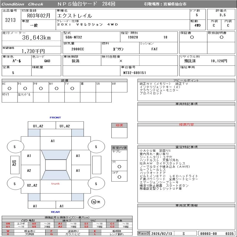 Статус выставлен на аукцион Лот 3213 Аукцион NPS Sendai Дата аукциона 10.03.2026