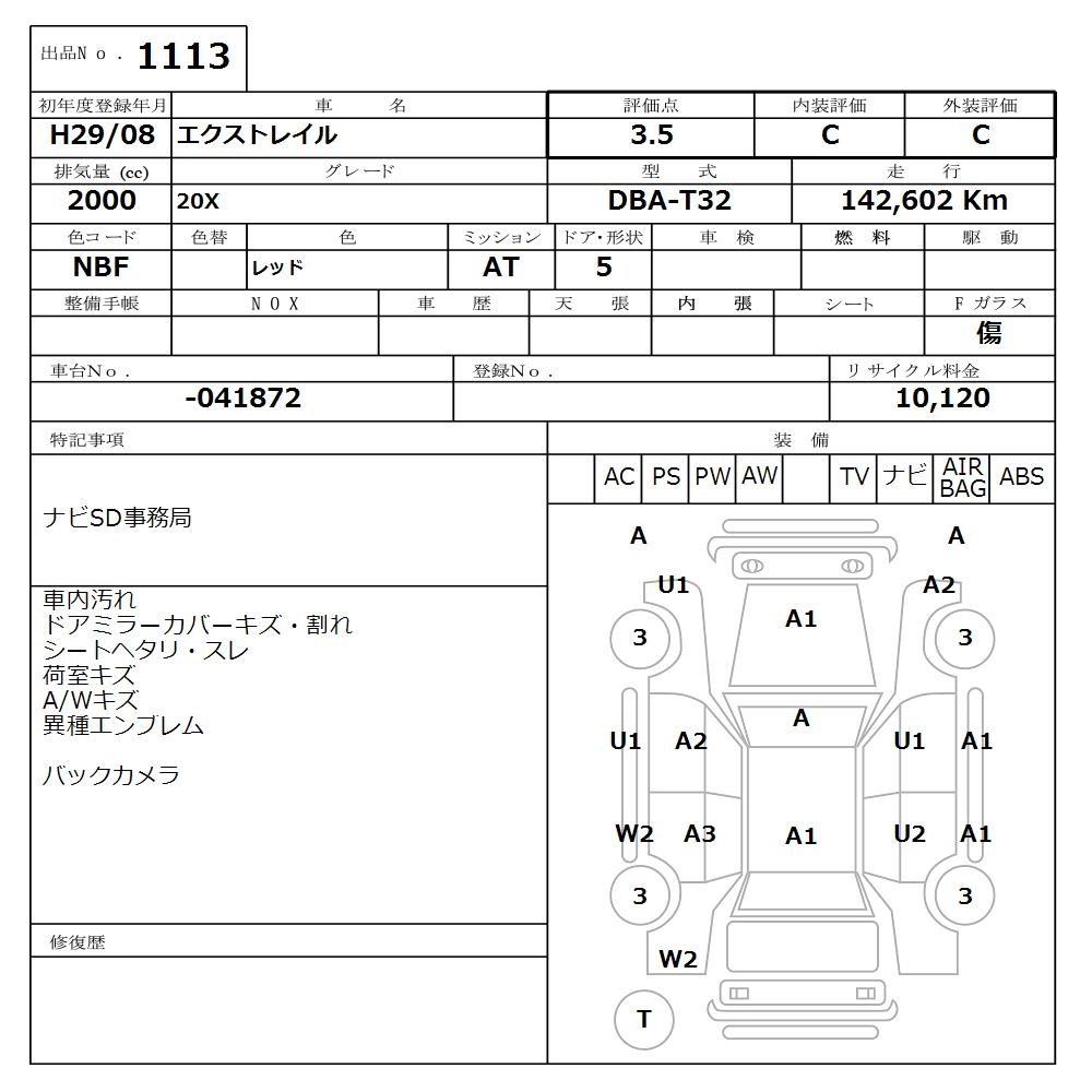 Статус продан Лот 1113 Аукцион Nissan Osaka Дата аукциона 09.03.2026