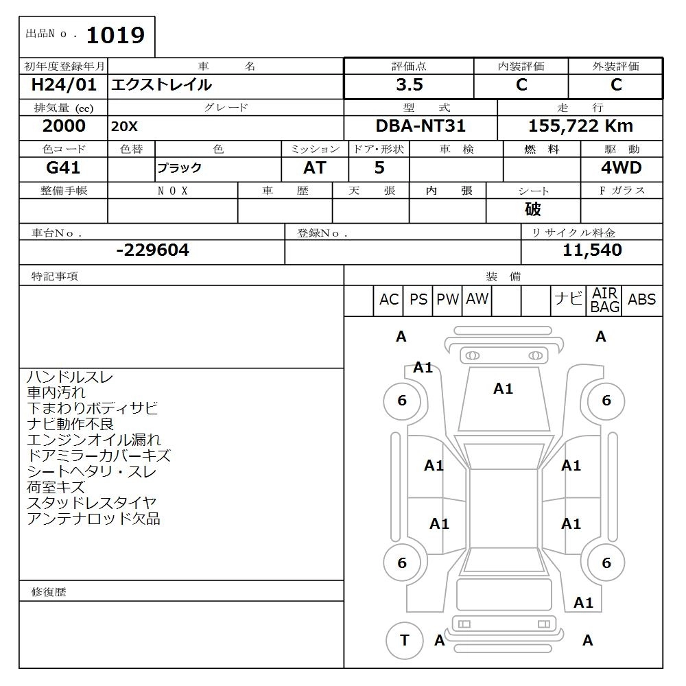 Статус продан Лот 1019 Аукцион Nissan Osaka Дата аукциона 09.03.2026