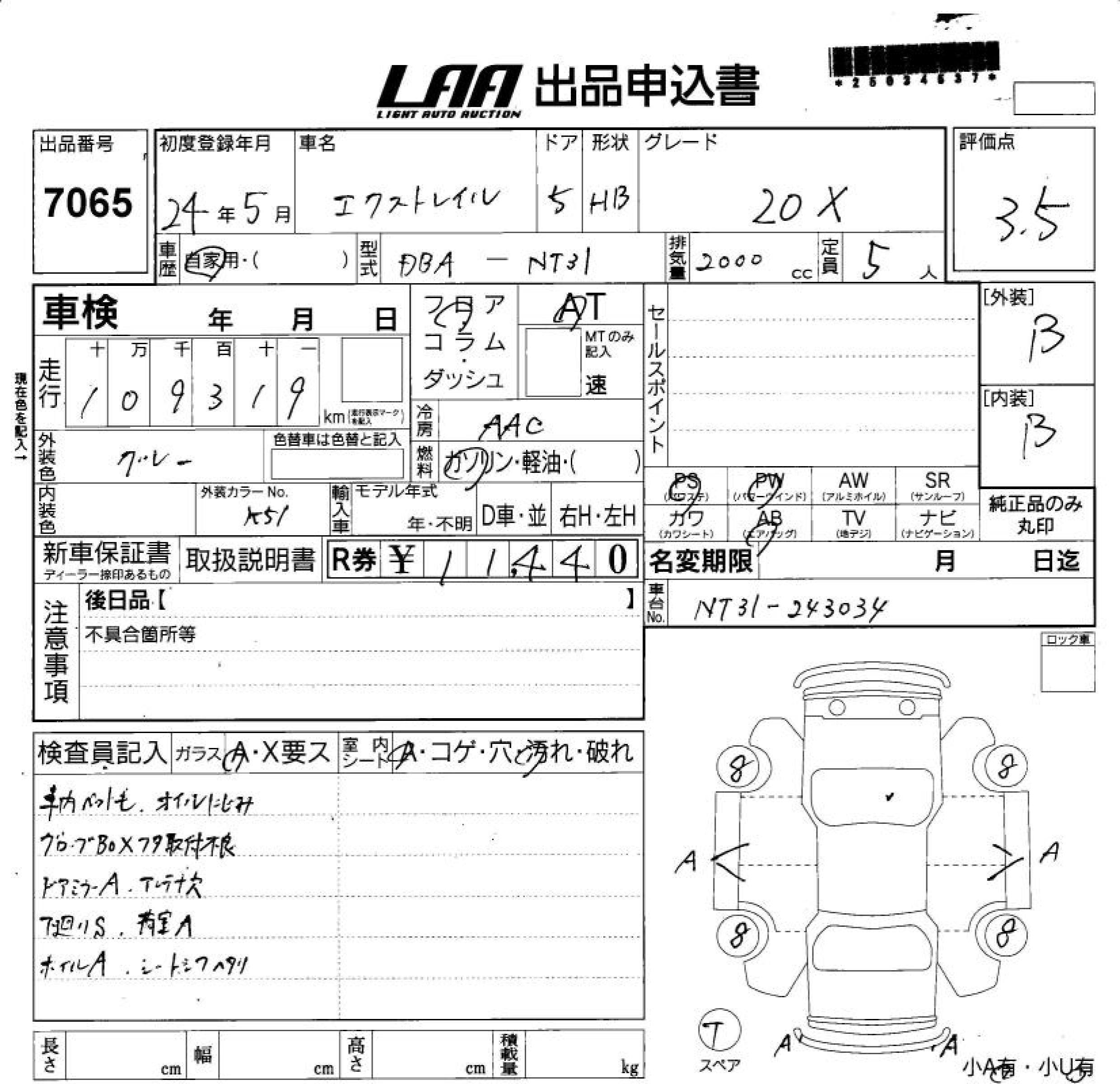 Год выпуска2012 Пробег 109 000 км КузовNT31 Комплектация20X