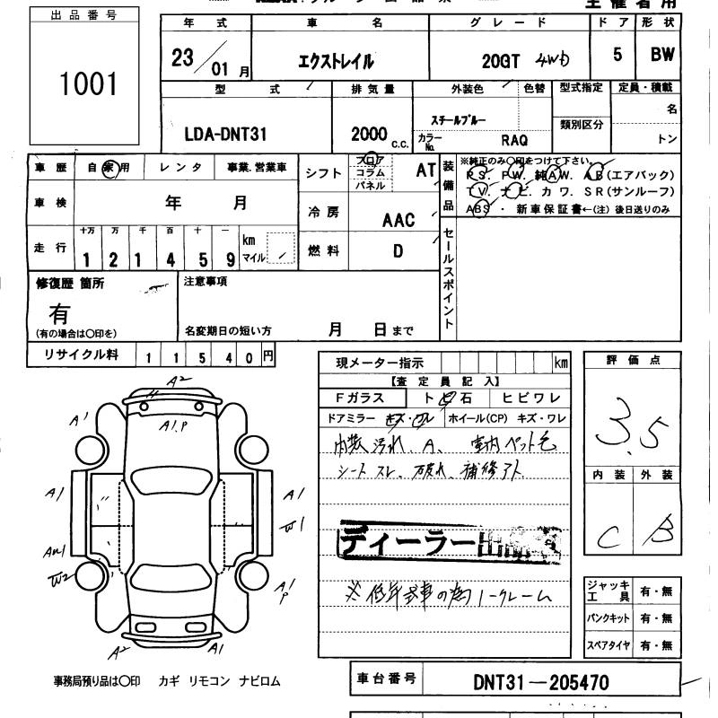 NISSAN X-TRAIL 2011 г., лот № 1001