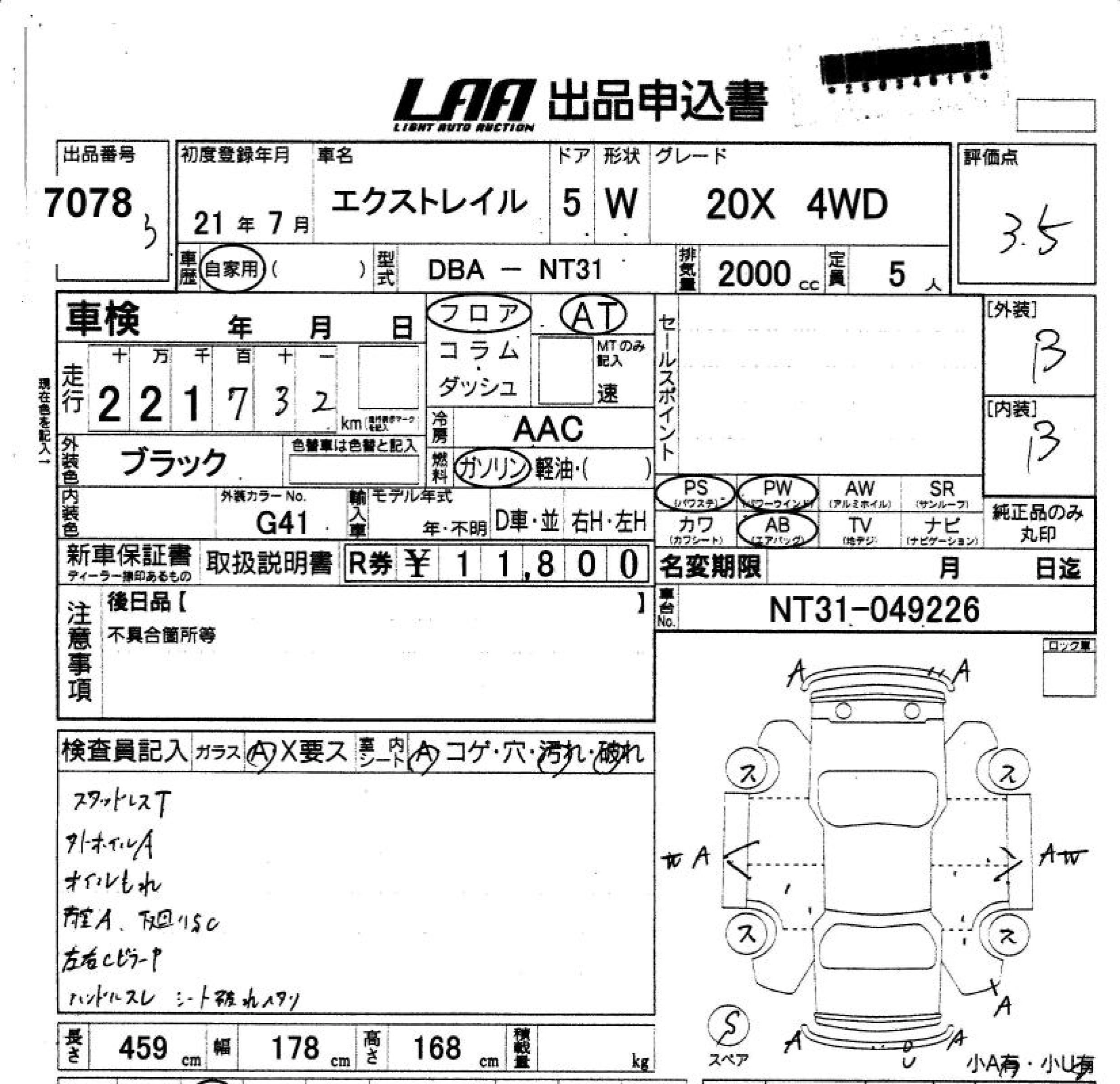 Статус выставлен на аукцион Лот 7078 Аукцион LAA Shikoku Дата аукциона 11.03.2026