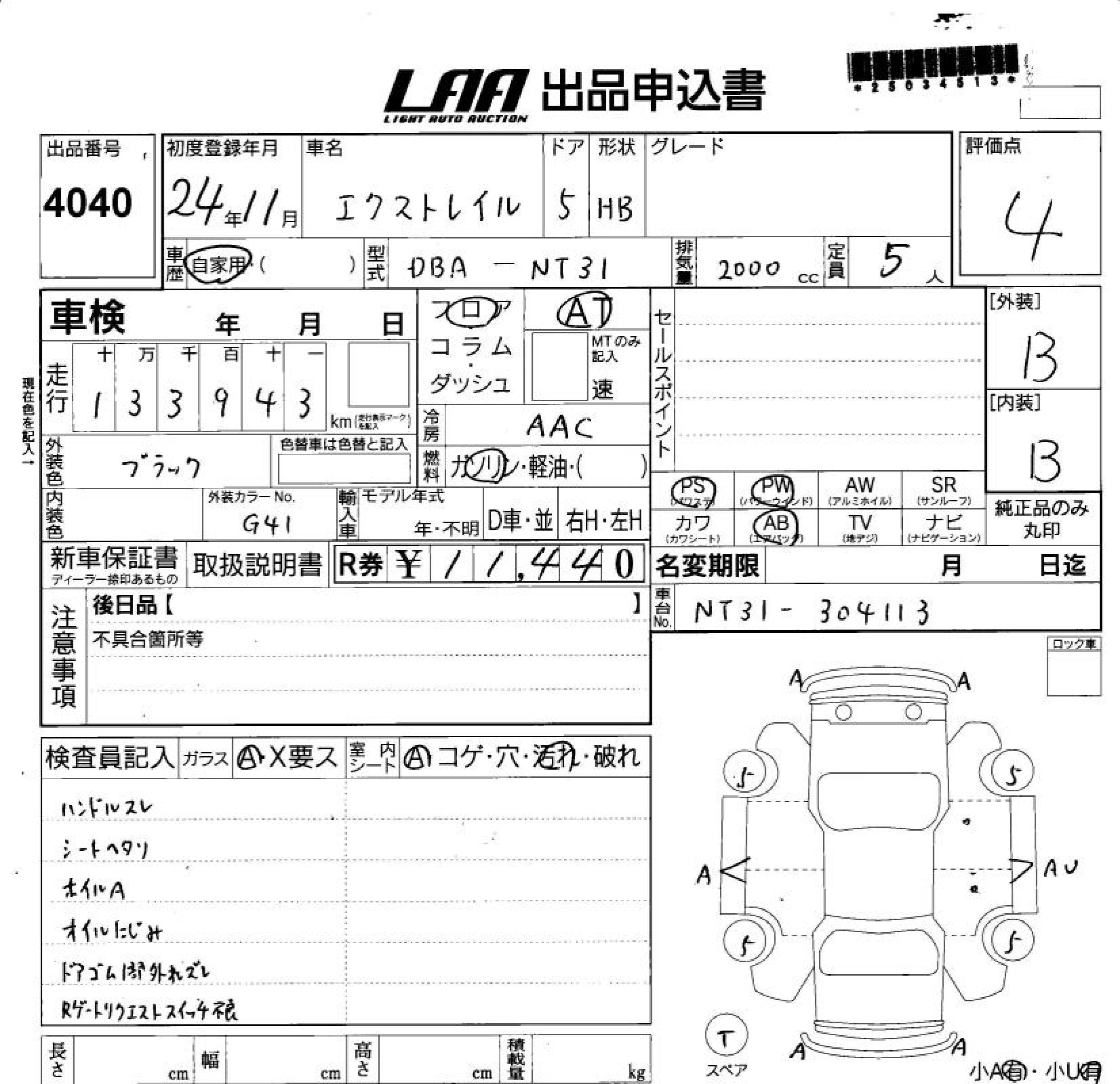 NISSAN X-TRAIL 2012 г., лот № 4040