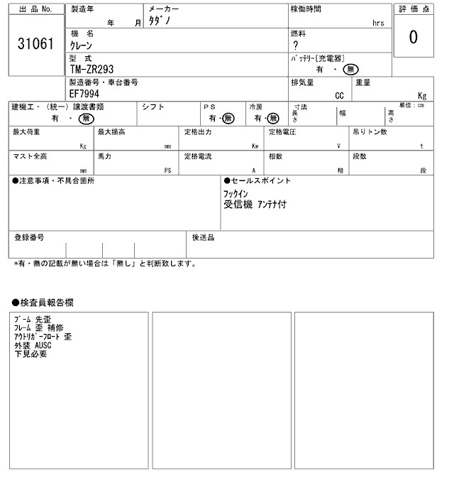 КузовTM-ZR293 Комплектация CRANE TADANO