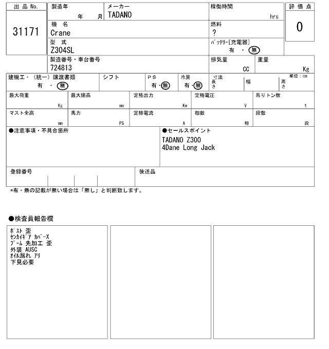 Год выпуска2000 КузовZ304SL Комплектация CRANE TADANO.4 -STEP