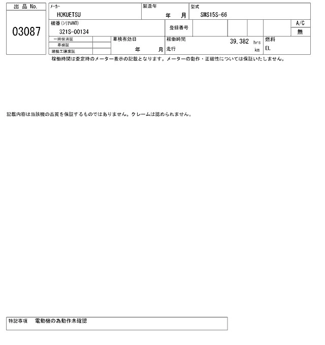Статус не продан Лот 3087 Аукцион ARAI Kenki Дата аукциона 18.11.2025