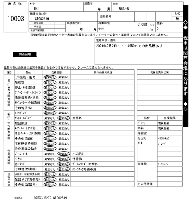 Статус выставлен на аукцион Лот 10003 Аукцион ARAI Kenki Дата аукциона 21.10.2025