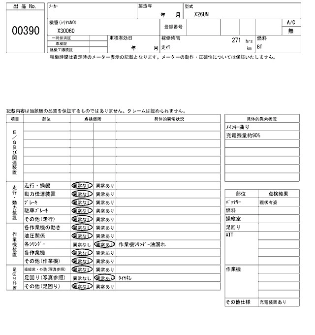 КузовX26UN КомплектацияKOK SUN HIGH PLACE OPERATION CAR